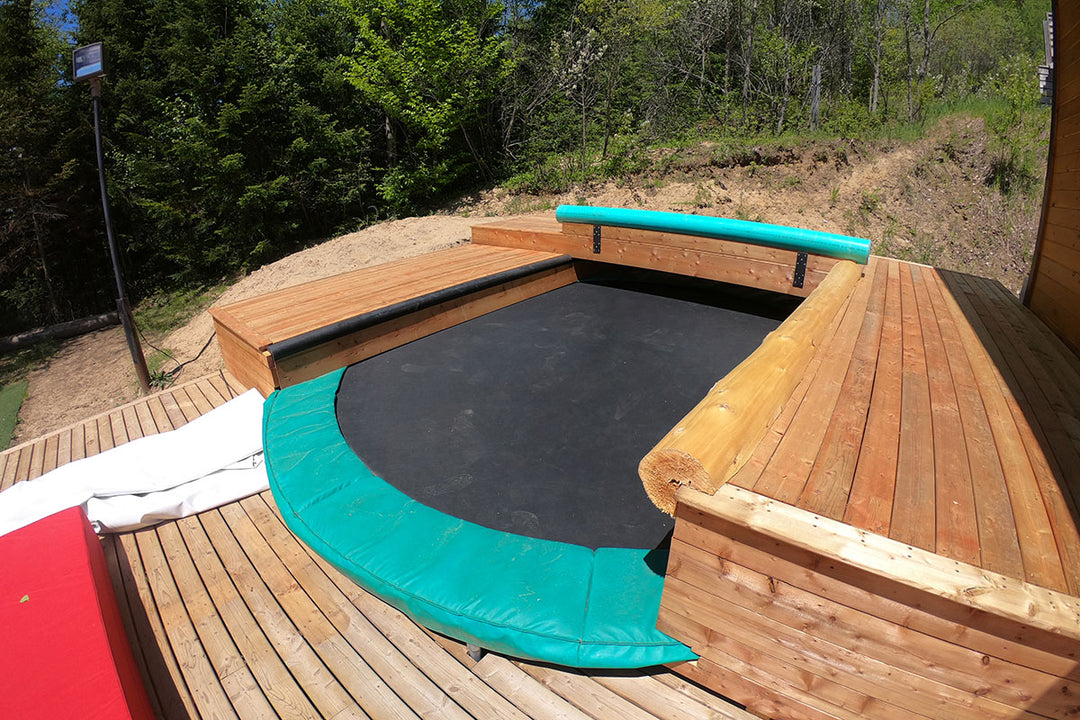 Created by Max Hénault, this 15-foot trampoline is surmounted by a wooden "log" allowing you to acquire the balance and consistency necessary for rail manoeuvres.